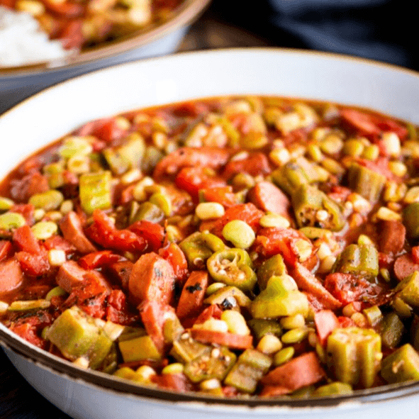 SERVED WITH MASHED POTATOES, GREEN BEANS, AND A CORN MUFFIN.