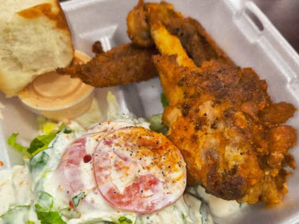 1 POACHED DRUM PIECE, 1 FLAT PIECE, MARINATED IN A HOUSE BLEND OF SPICES. SERVED WITH SIDE SALAD, 1 ROLL AND 1 SAUCE