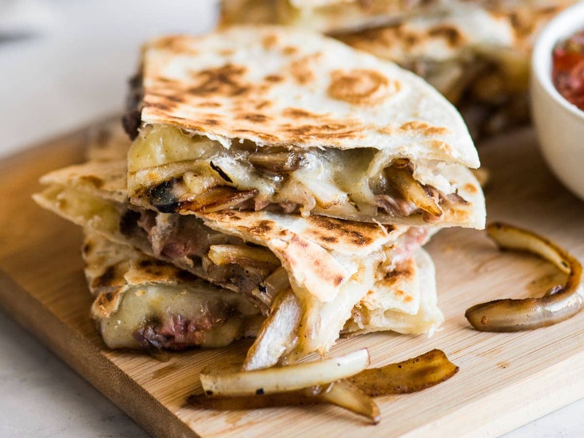 Carne Asada, Grilled Onions, Green Pepper, Queso, BBQ Harissa