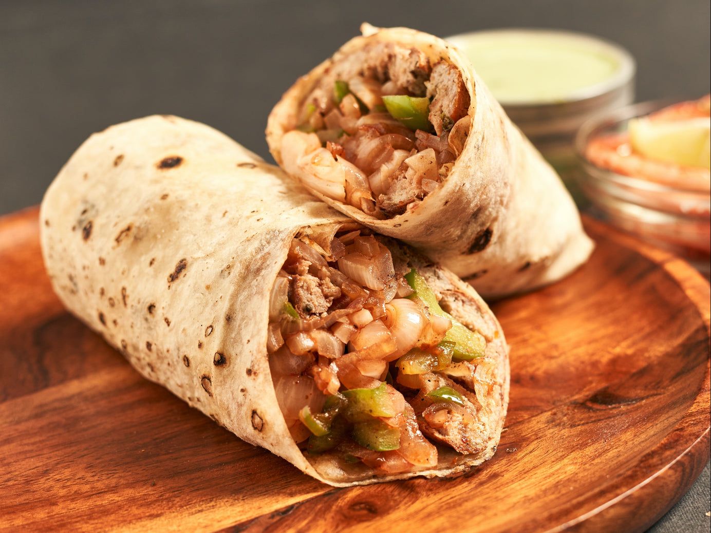 12-inch tortilla stuffed with seasoned ground beef, refried beans, Spanish rice, melted cheese blend, sour cream, and mild salsa roja.