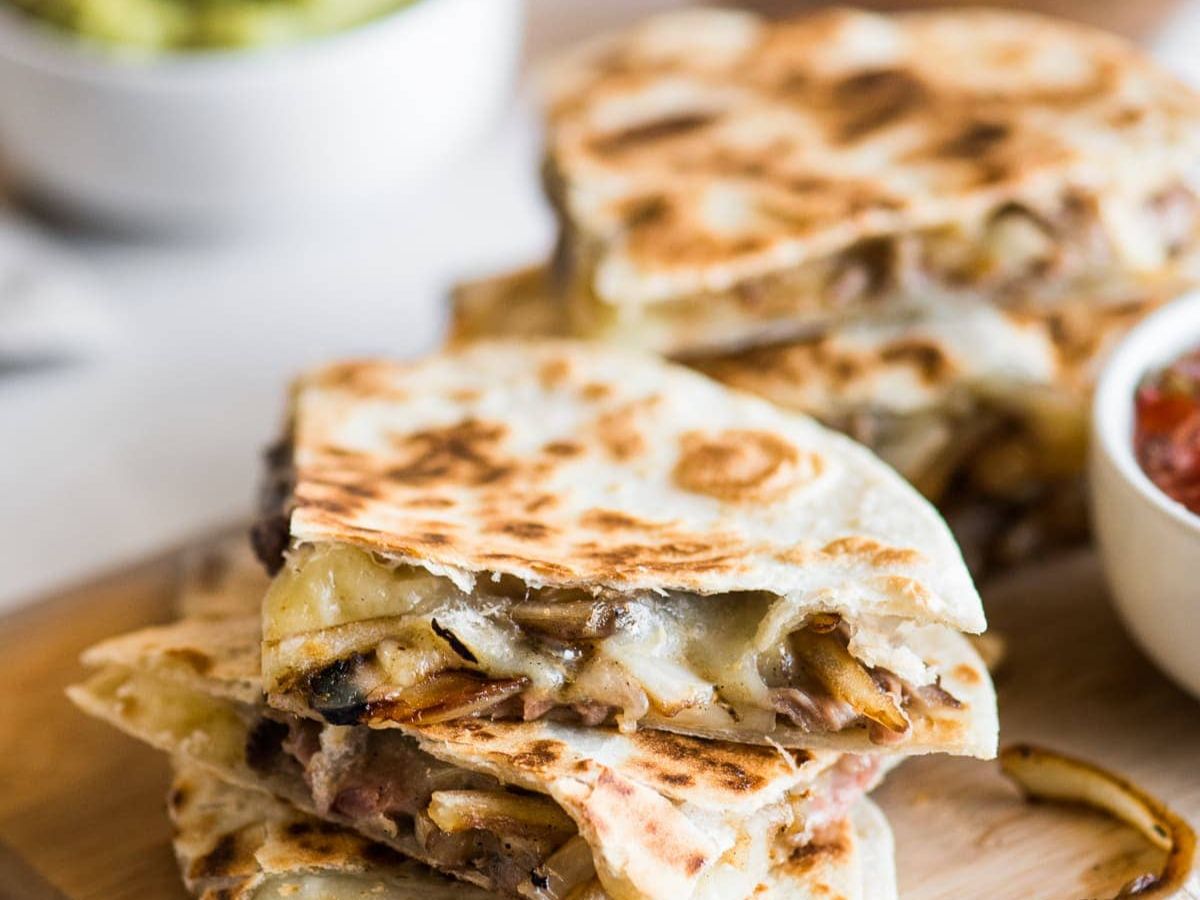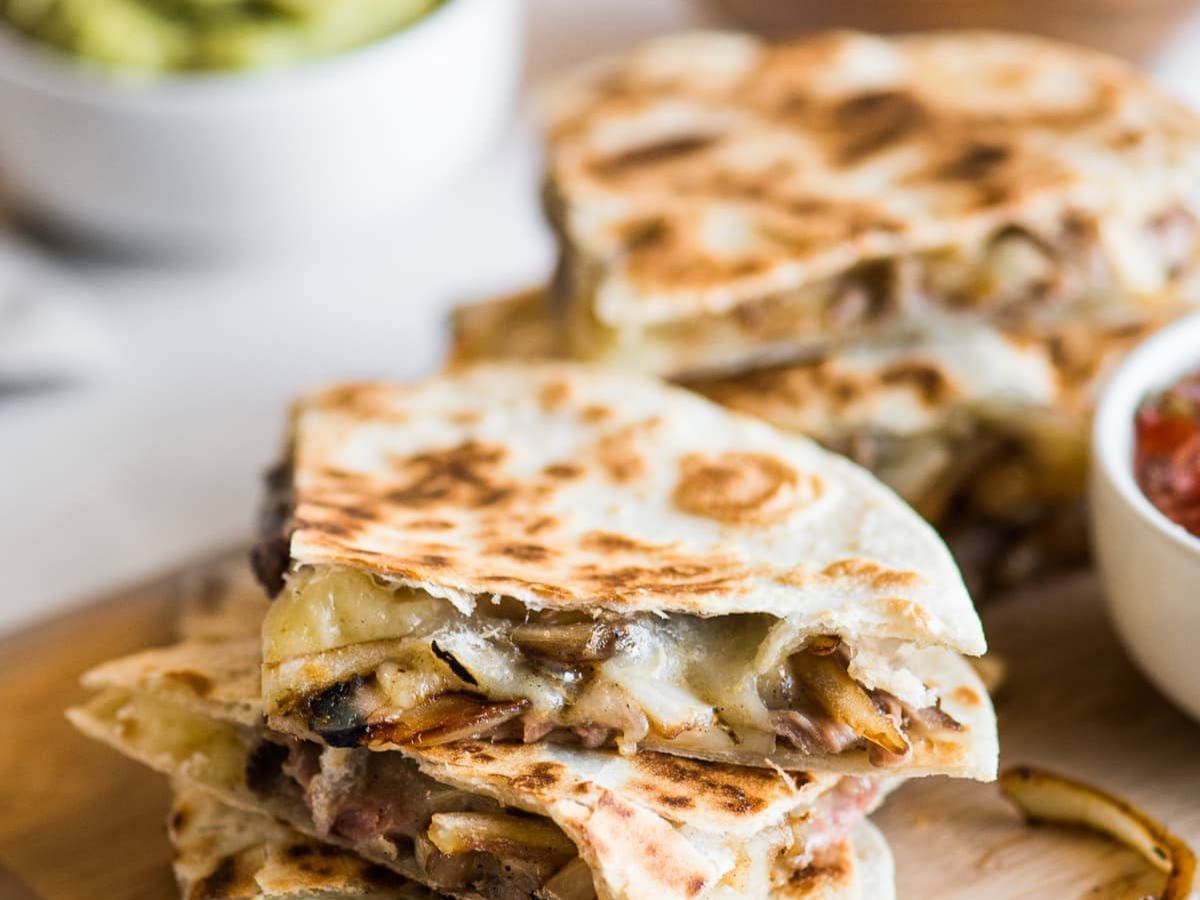 A 12-inch tortilla stuffed with smoky chipotle chicken, Mexican rice, black beans, sautéed onions and peppers, and melted Mexican cheese blend. Topped with chipotle mayo, served with sour cream and a mango habanero drizzle for a sweet-heat kick.