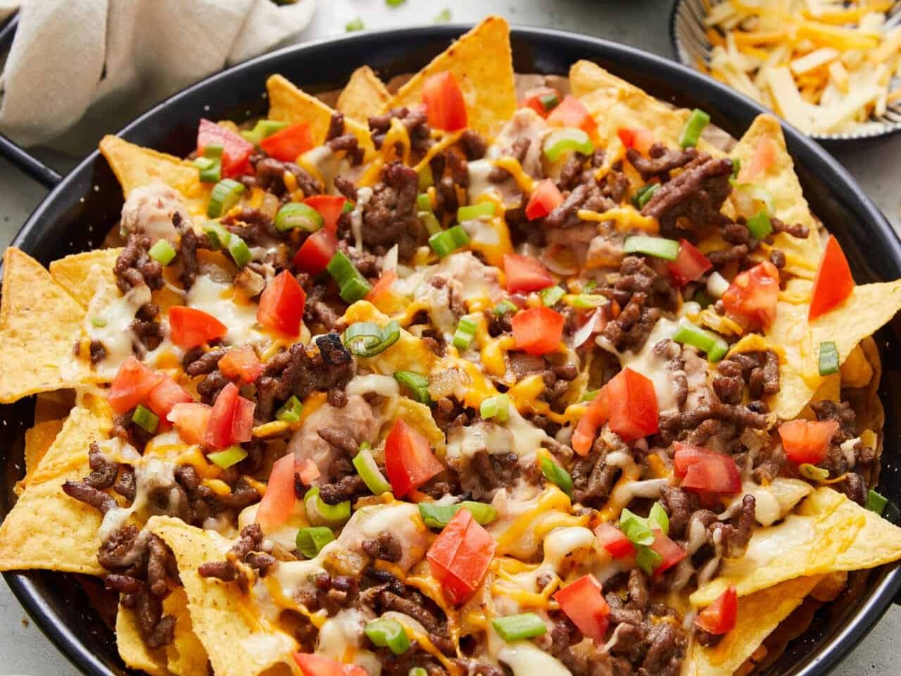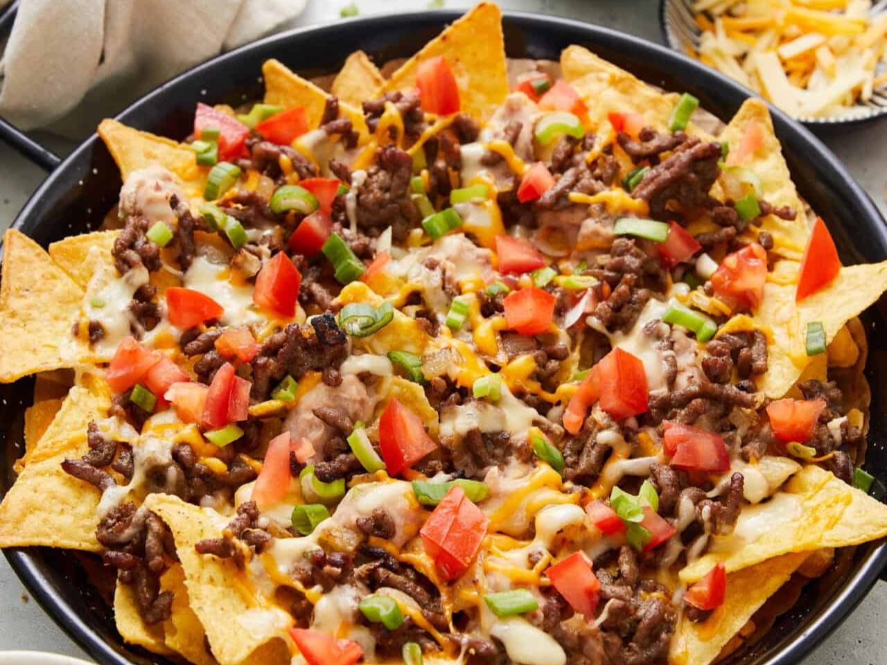 Tortilla Chips · Seasoned Ground Beef · Refried Beans · Jalapeños · Cheese Blend · Pico · Sour Cream