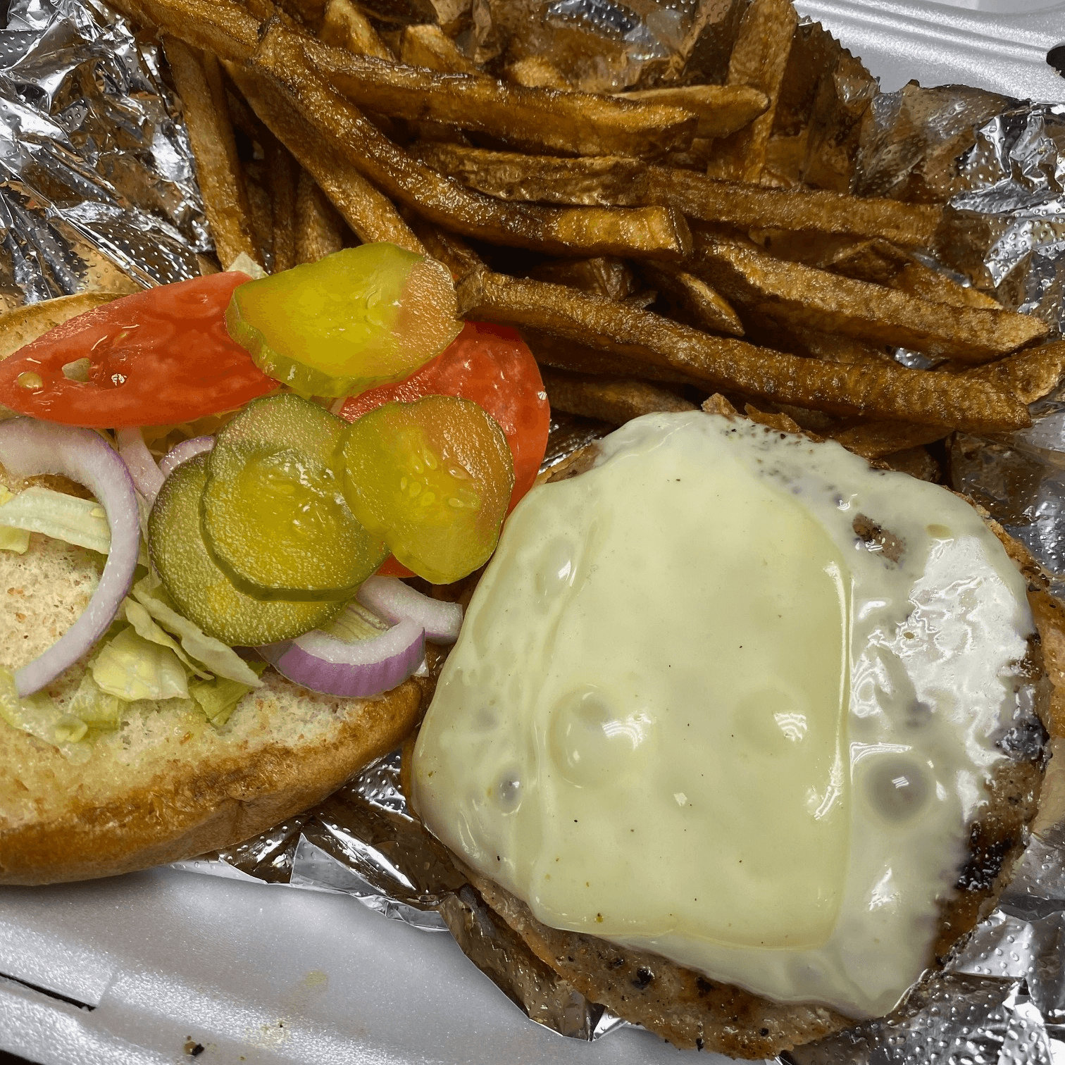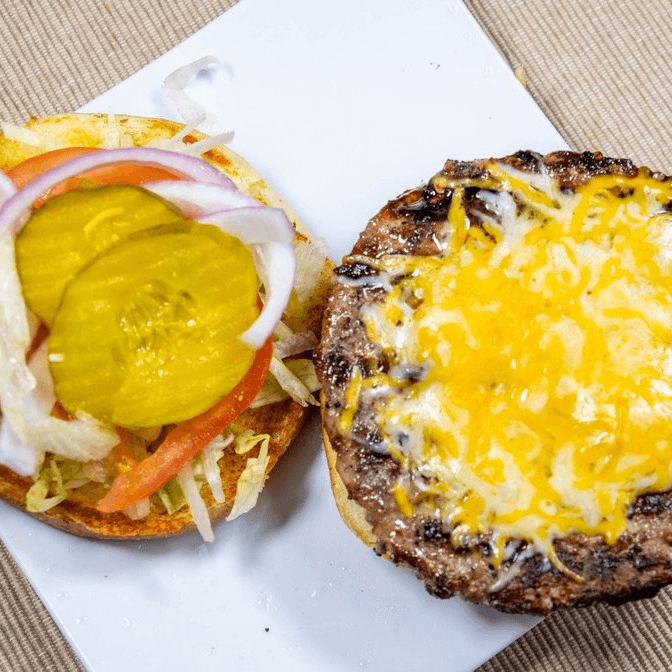 All burgers comes w/ lettuce, tomatoes, onions, and pickles