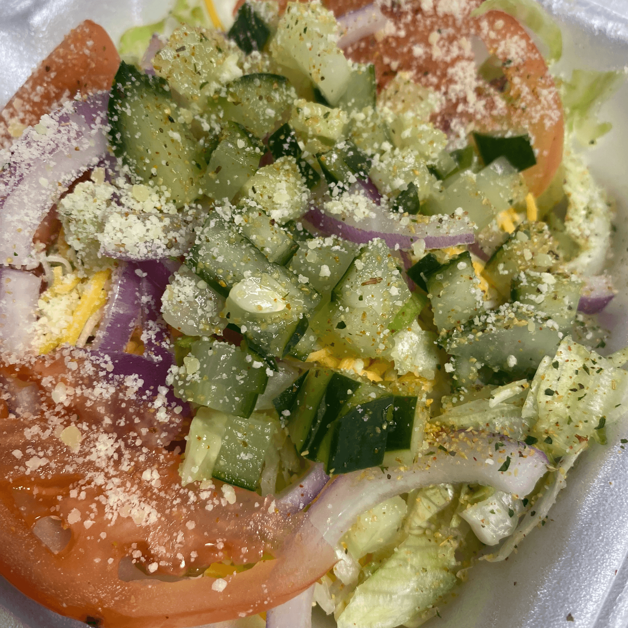 Comes with lettuce, tomato, cheese, egg & cucumbers